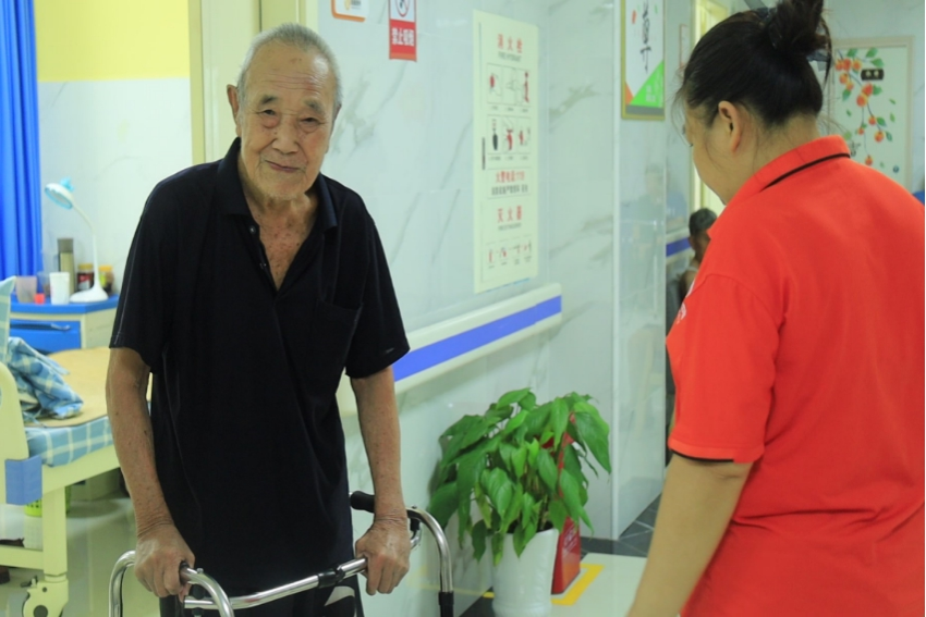 护理员照看老人行走
