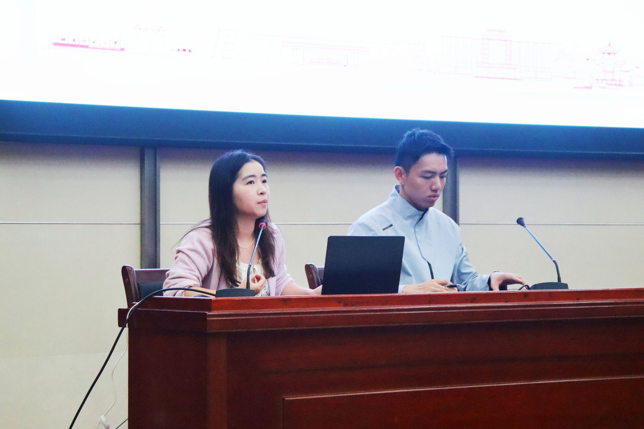 讲座第二部分,陈安琪、冯泽桐开展新生校园适应主题教育。主要围绕大学生学习考勤、校园文化活动、宿舍生活、安全教育等方面进行介绍和答疑,帮助新生们解除困惑,更快更好的适应校园生活,完成从高中生到大学生的生活转变。同时对同学们的考勤、宿舍卫生等方面提出了要求,引导同学们在日常学习生活中树立规则意识。