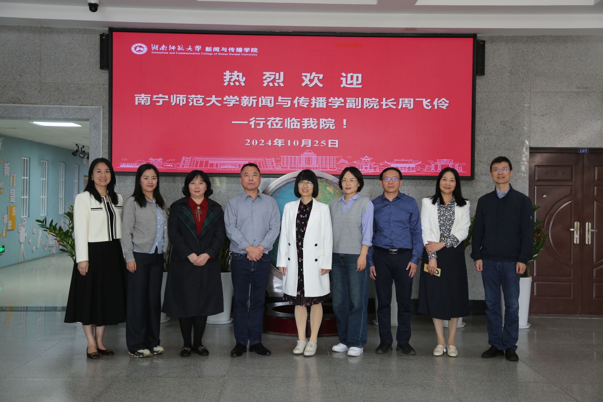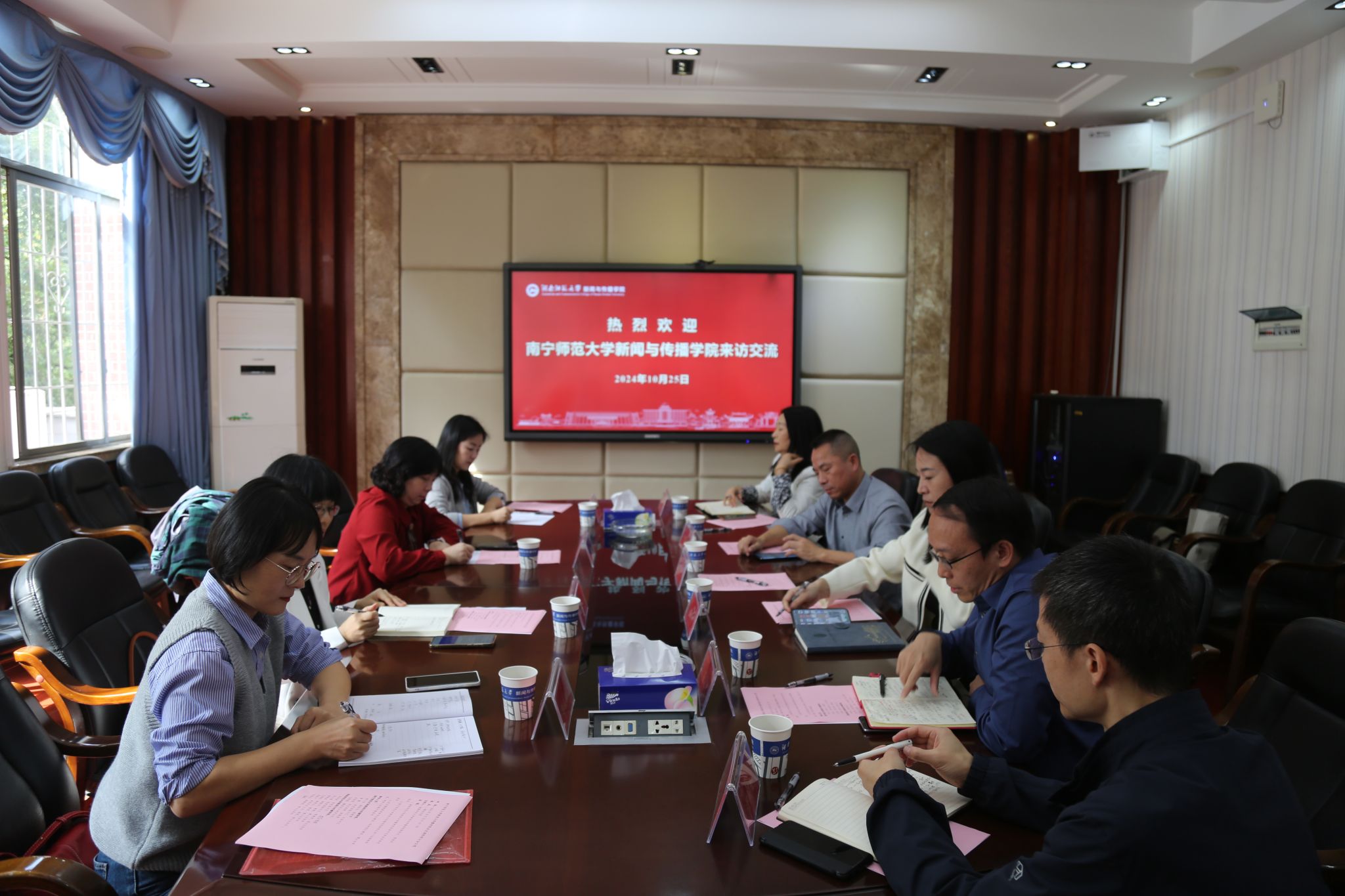 (通讯员 杨晓雨 王洋)10月25日上午,南宁师范大学yl23411永利集团副院长周飞伶一行来我院进行调研。院党委书记李泳波、党委副书记张小春、副院长燕道成教授、副院长王海刚教授、新闻系系主任吴果中教授、播音与主持艺术系张国光副教授参加研讨会。