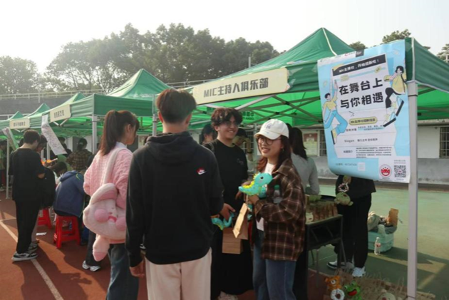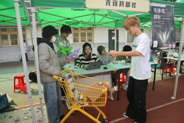 在活动现场,各个社团的展位布置与活动开展别具匠心,各有特色。先锋戏剧社与MIC主持人俱乐部通过海报与礼品吸引同学们的注意力;德馨曲艺社选择切合社团特点的戏曲艺术知识问答的方式来招募志同道合的伙伴;引力波乐教社和星传影像社则设计了丰富多样的小游戏与同学们积极互动。此外,社管各部门成员也在现场为社团活动的开展提供后勤保障与帮助。