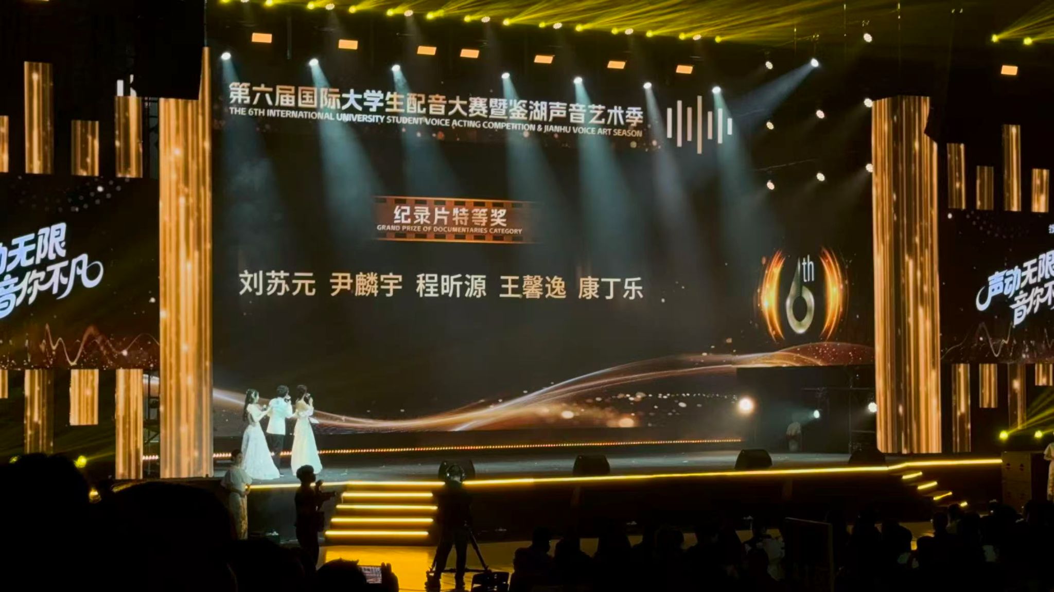(通讯员 吴羡)近日,2025第六届国际大学生配音大赛获奖名单正式发布。其中,我院二二级播音与主持艺术专业的王馨逸同学凭借扎实的专业功底、灵动的声音表达与精准的情感把控,在近千名参赛者中脱颖而出,一举斩获最佳声音奖与纪录片特等奖两项重磅荣誉!