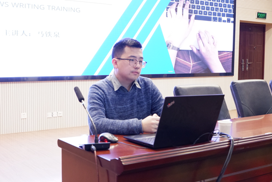 马铁泉表示,新闻工作者的使命是保持人民情怀,记录伟大时代,讲好中国故事,传播中国声音。新闻工作者需通过不断的学习与实践来提高自身的新闻写作水平。马铁泉从“新闻简介与素材收集”、“新闻结构与写作技巧”、“各类新闻稿件及特征”、“新闻价值与新闻工作者使命”四个方面深入浅出地向同学们介绍与分析了新闻写作的基础知识,并结合自身学习经验和写作经历向同学提出“三个一致”的要求,即与党组织保持一致、与媒体调性保持一致、与同类新闻保持一致。最后马铁泉肯定了致远传媒的发展成果,并对其长远发展提出两点建议:一是加强与上级部门工作交流与联系;二是希望能在更多的新闻现场看见致远工作者的身影,向更高平台发展。