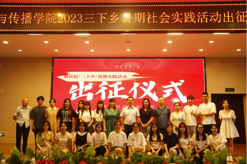 最后,举行2023年新传院暑期社会实践活动授旗仪式。新传院院领导和各指导老师为三下乡各个团队授旗,并勉励他们不断奋进,展现新传学子的风采。