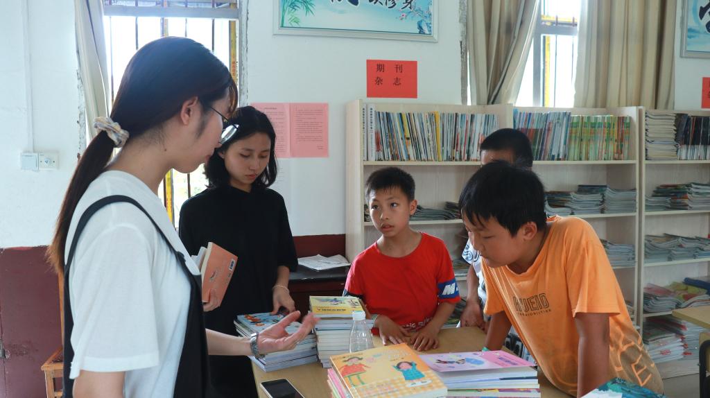 实践团分为两组,一组前往四(2)班分享《小王子》的人生故事,一组前往五(1)班讲解《昆虫记》趣味知识。课堂中,实践队员给小朋友播放贴合小学生年龄层次的书籍相关视频,并给予回答问题的小朋友更多的糖果奖励,引起孩子们的热烈回应。课后,实践团就小朋友们的阅读兴趣、阅读习惯、阅读陪伴、阅读购买情况等展开问卷调查,额外寻找十位六年级学生作为深度采访对象。下午,实践队员将通过联系湖南少年儿童出版社捐赠给小学的图书按一到三年级和四到六年级分为两类,搬运到图书阅览室,吸引了孩子们欣喜的目光。