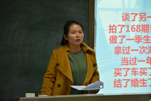 金婷同在座同学分享了自己大学四年拍广告片、DV剧、办培训班、开展社团活动的经历。她以播放视频的形式讲述了在湖南都市频道担任首席记者拍摄《寻情记》、《怀胎九月》的幕后故事。杨钰洁则以轻松幽默的口吻讲述了自己作为电视人拍摄节目的亲身经历。她提出实习中应该具备三点特质“足够勤奋、愿意学习、平衡心态”,并与金婷一同强调了多读书的重要性。