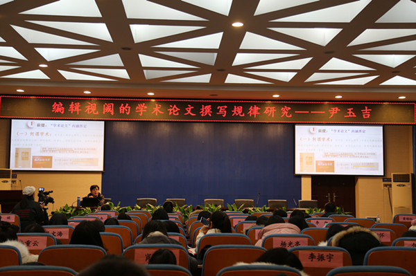 尹玉吉围绕“编辑视阈的学术论文撰写规律”这一主题给大家详细讲述了有关学术论文的八个问题。他首先和大家分享了何为学术、何为论文、何为学术论文三个问题,结合自己的深刻体会和丰富经验,就如何写学术论文提出自己的观点,并着重强调了创新的重要性。尹玉吉教授还分享了一些实现论文创新的具体切入点,并运用一些具体事例告诉同学们如何去实践,为同学们解除了一部分写作中遇到的困扰。