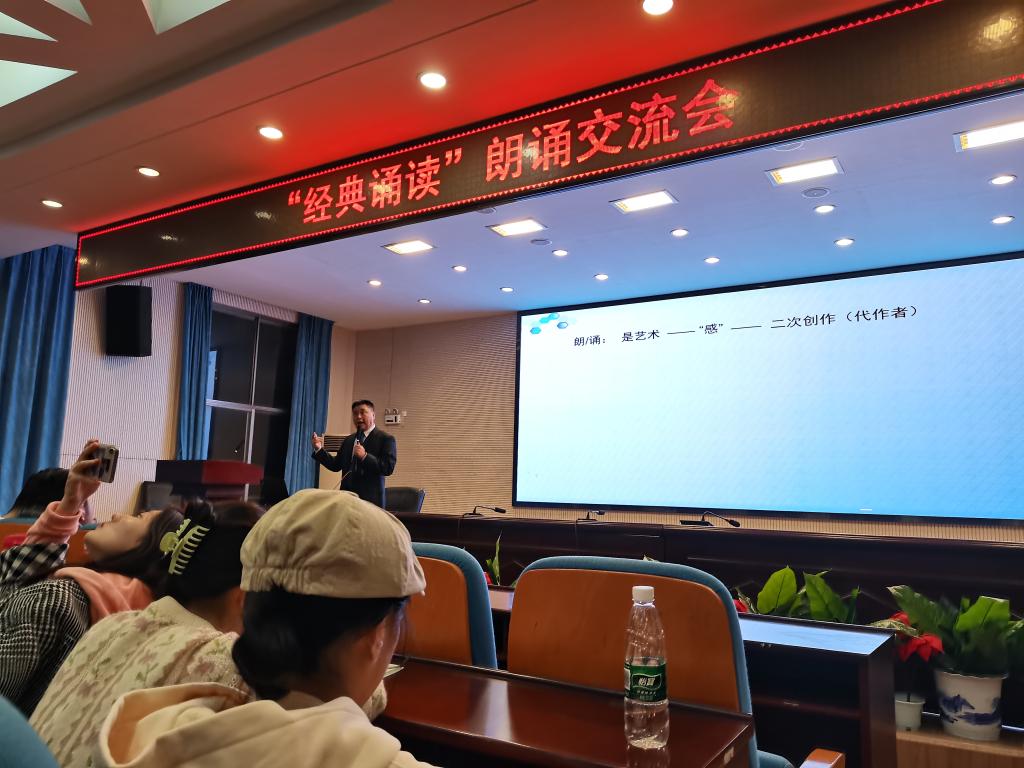 11月17日晚(本周四),我校yl23411永利集团面向全院学生在新传院大楼书山论坛大讲堂开展《朗诵“三感》主题讲座,会议邀请到了湖南省语言文字工作者协会常务副会长兼普通话测试专业委员会主任高广安老师为同学们分享授课。高广安老师为同学们讲述了什么是朗诵中的“三感”并与同学们展开讨论,让同学在感受与联系中有所收获。他强调:朗诵需要围绕“感受,朗诵中的“三感”是语感、画面感和情感,只有三感共同调动,才是真正有艺术性、有感染力、有内涵的艺术创作。高广安老师语言幽默、倾囊相授,台下同学们热情饱满、掌声雷动,纷纷表示收获颇丰。