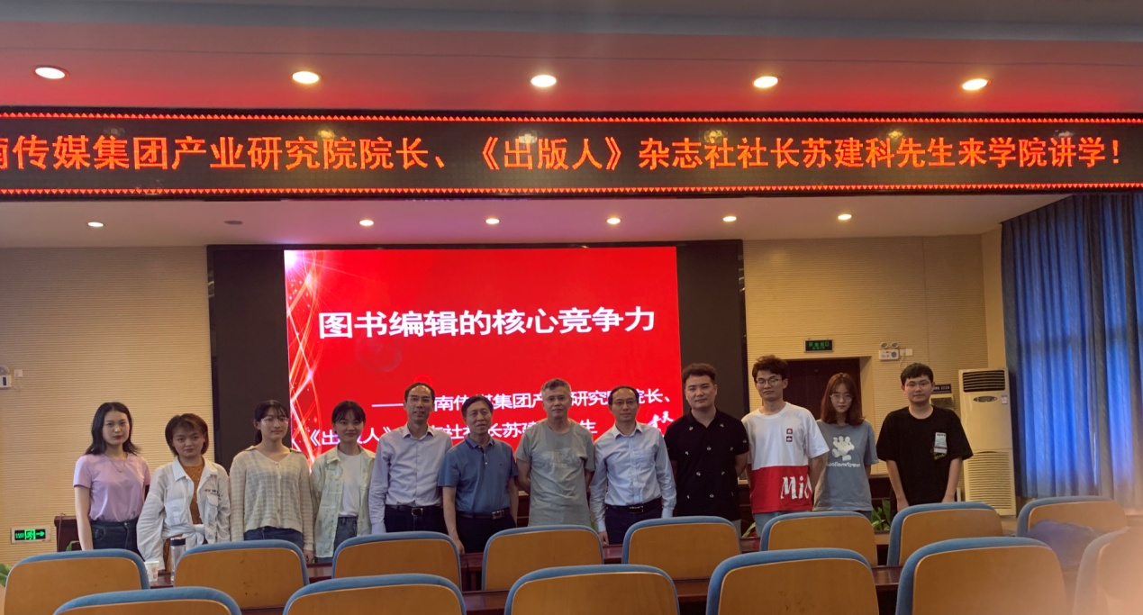 (通讯员 班瑶) 5月11日下午,中南传媒集团产业研究院院长、《出版人》杂志社社长苏建科在新闻传播学院书山论坛作主题为“图书编辑的核心竞争力”的学术讲座,讲座由副院长周国清主持。