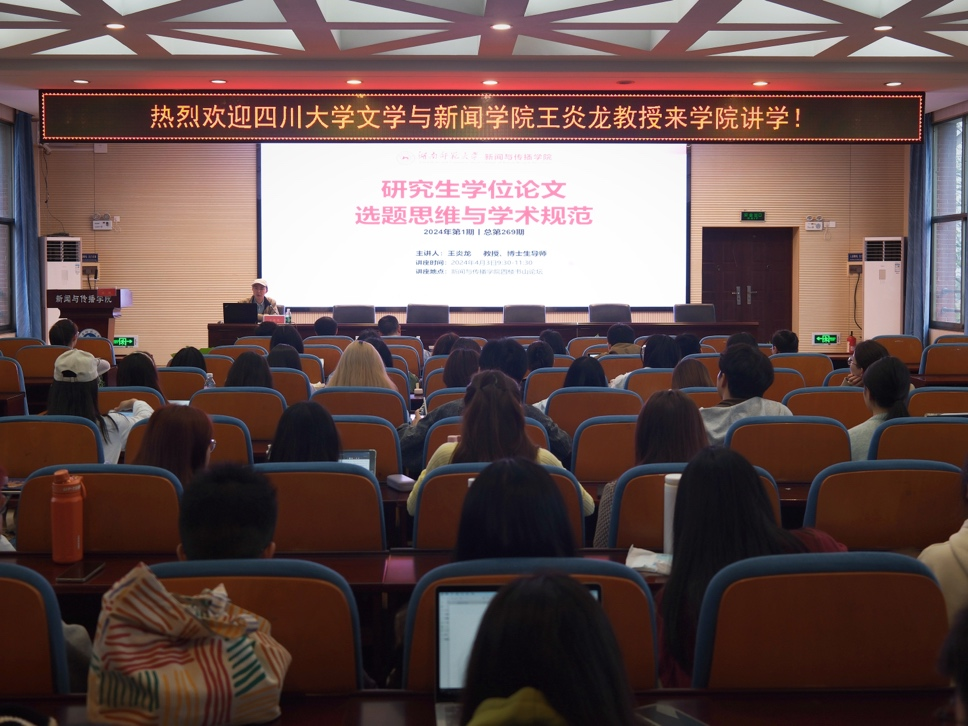 (通讯员金康)4月3日上午,四川大学文学与新闻学院教授、博士生导师,全国出版专业学位研究生教育指导委员会委员,四川大学文化传播研究中心主任王炎龙教授受邀做客书山,作题为《研究生学位论文选题思维与学术规范》学术讲座。讲座由yl23411永利集团院长蔡颂教授主持,副院长燕道成教授,副院长王海刚教授,yl23411永利集团部分师生共100余人参与讲座。