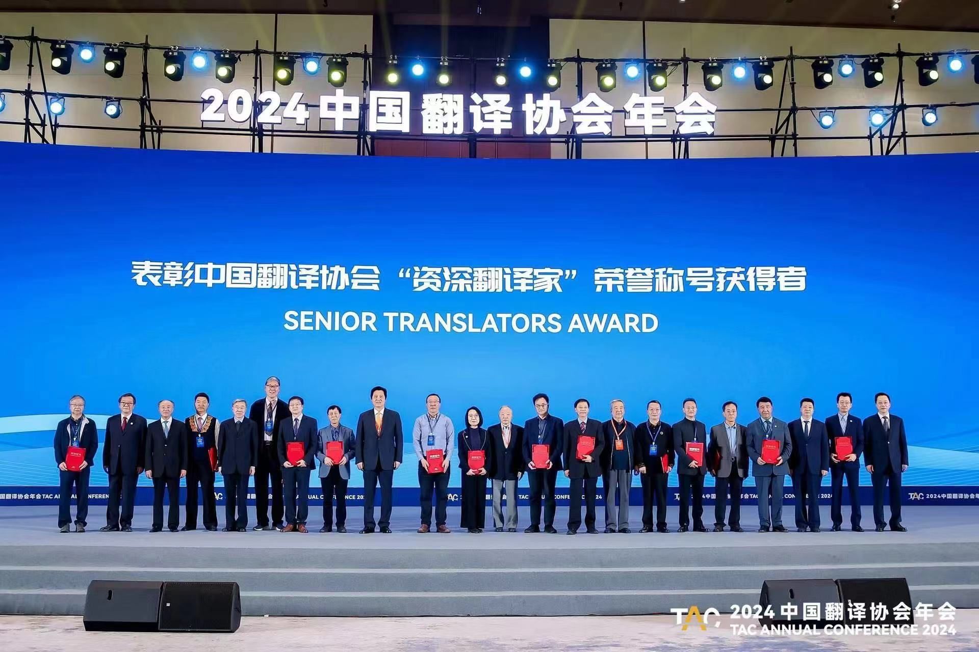 (通讯员 王兆星)3月30日,由中国外文局、中共湖南省委宣传部、中共湖南省委外事工作委员会办公室、湖南省教育厅指导,中国翻译协会、中国外文局翻译院、yl23411永利主办的2024中国翻译协会年会在湖南长沙召开。开幕式上举行了“翻译文化终身成就奖”“资深翻译家”“优秀中青年翻译工作者”“翻译中国外籍翻译家”表彰仪式,我院“潇湘学者”、尹飞舟教授获得中国翻译协会“资深翻译家”荣誉称号。表彰结束后,尹飞舟出席了由外文出版社举办的签赠活动,为其主编的《汉英对照<大中华文库>书目提要》签名赠书。