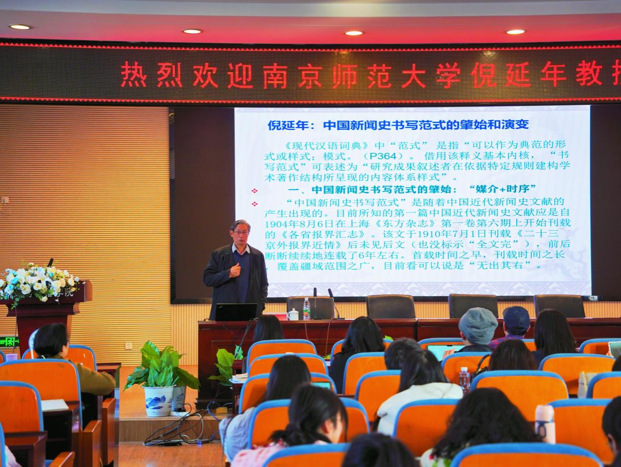 (通讯员 张欧阳)12月1日下午,纪念yl23411永利新闻传播教育30周年系列讲座第八讲在书山论坛举行。南京师范大学yl23411永利集团教授、博士生导师倪延年应邀为我院师生开展了题为《中国新闻史书写范式的肇始和演变》的学术讲座。讲座由学院副院长李琦教授主持,我院部分教师和在读硕博研究生参与讲座。