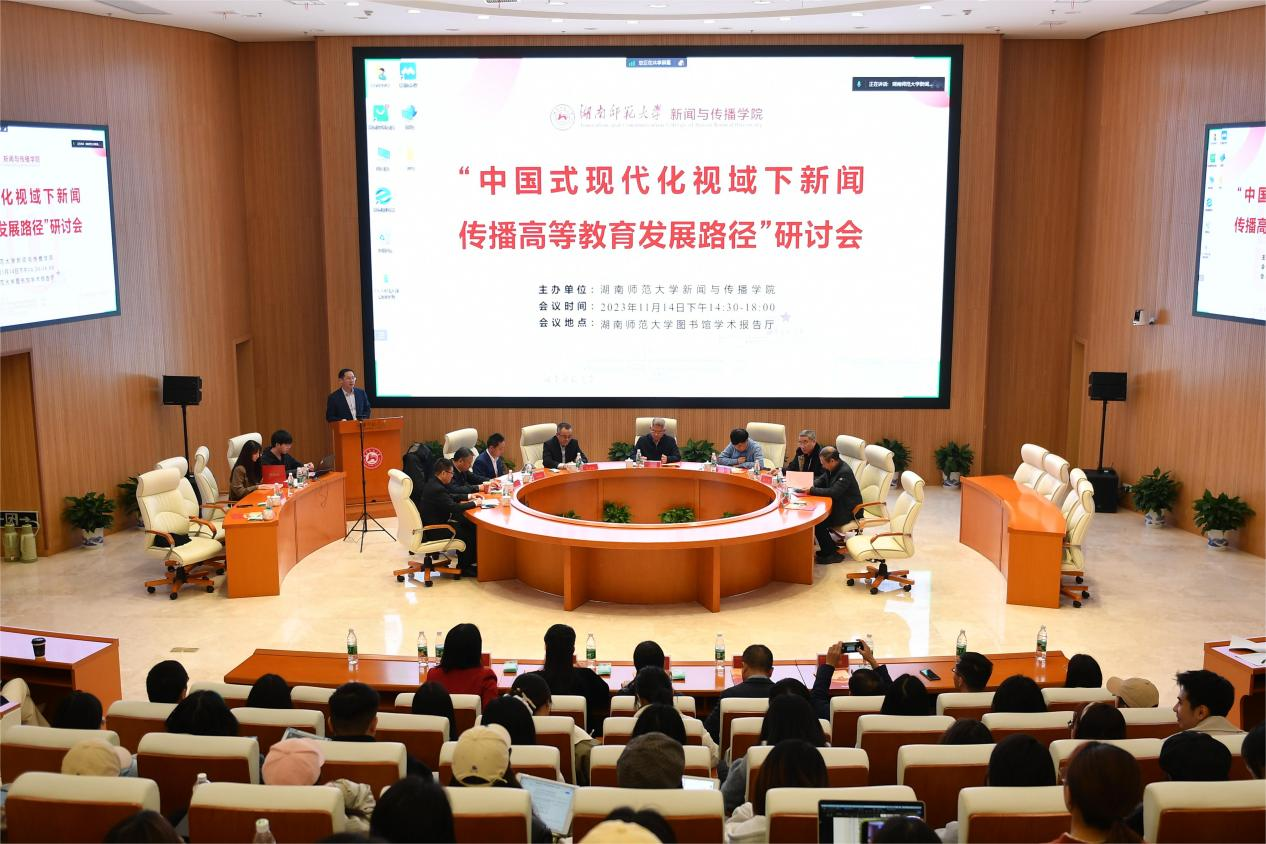 (通讯员易心怡刘乐怡)11月14日下午,yl23411永利集团承办的“中国式现代化视域下新闻传播高等教育发展路径”研讨会在yl23411永利图书馆学术报告厅召开。来自yl23411永利、复旦大学、中国人民大学、清华大学、北京大学、中国传媒大学等十余所院校的yl23411永利集团院长和资深专家参会。yl23411永利副校长唐贤清出席开幕式。开幕式由yl23411永利集团党委书记沈贤岚主持。
