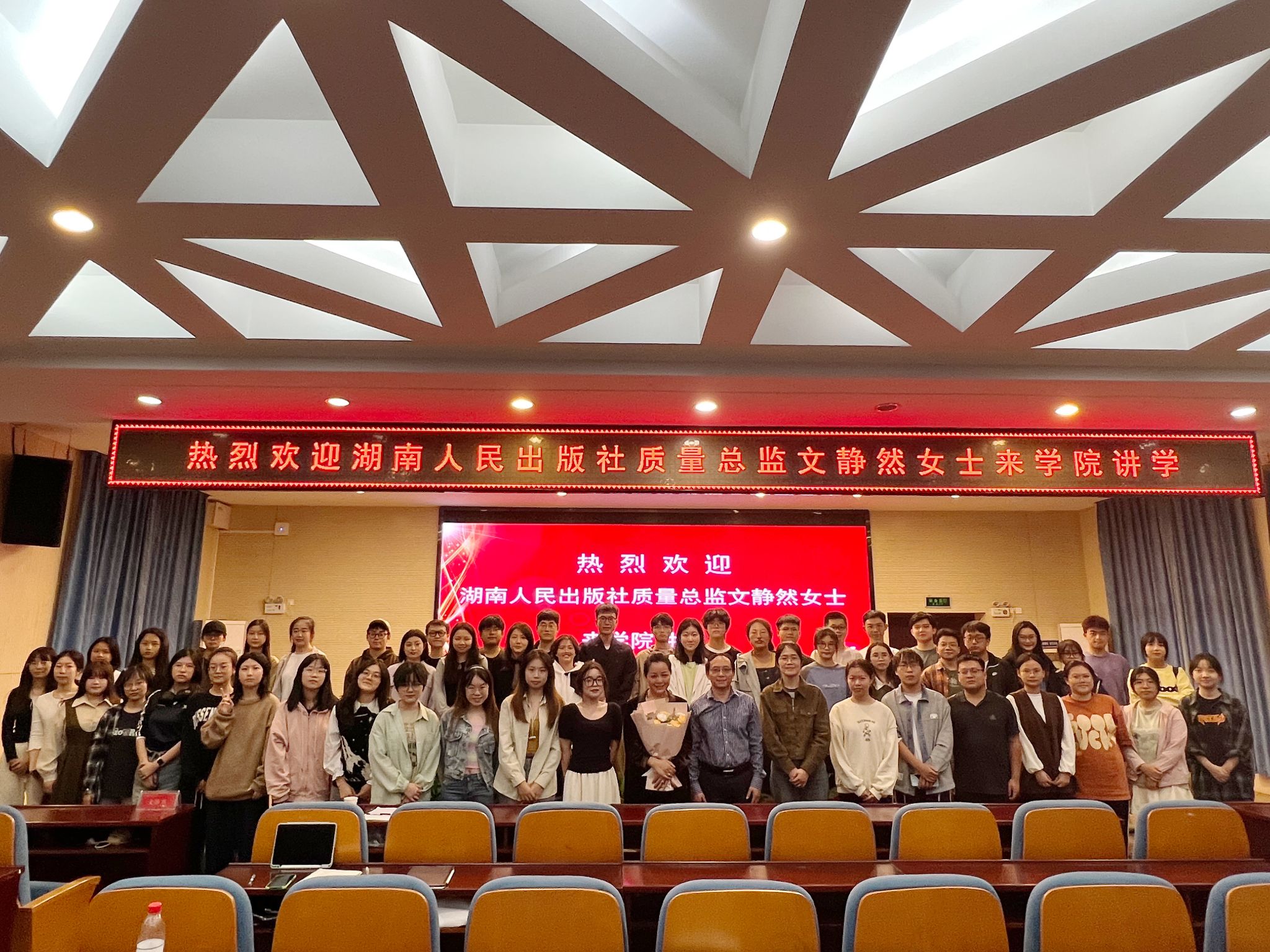 (通讯员 李冠华)2023年10月19日下午,中共湖南省委宣传部出版产品质量监督检测中心首席专家、湖南人民出版社质量总监文静然女士做客书山论坛,为yl23411永利集团师生带来“工业4.0时代的编辑加工能力”主题讲座。讲座由副院长王海刚教授主持,新传院尹飞舟教授、专任教师叶翠、部校共建办主任王倩参加讲座。