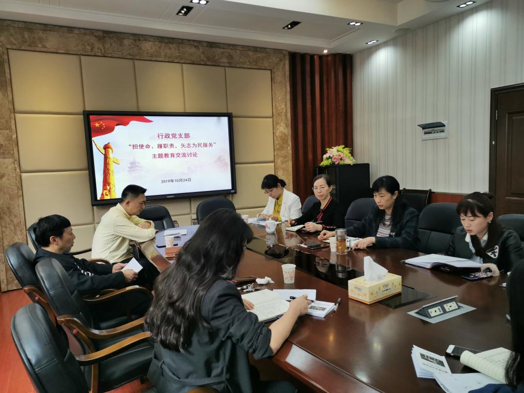 (通讯员:彭丽)10月24日下午,行政党支部在二楼会议室开展“担使命、履职责、矢志为民服务”主题教育交流会。党委书记李正益、副院长闵素芬、副书记王云出席会议并以普通党员身份交流发言。